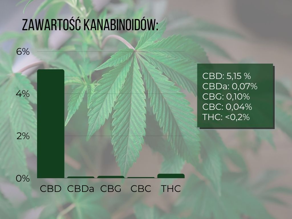 Składniki: ekstrakt konopny zawierający 5% CBD, naturalne terpeny.